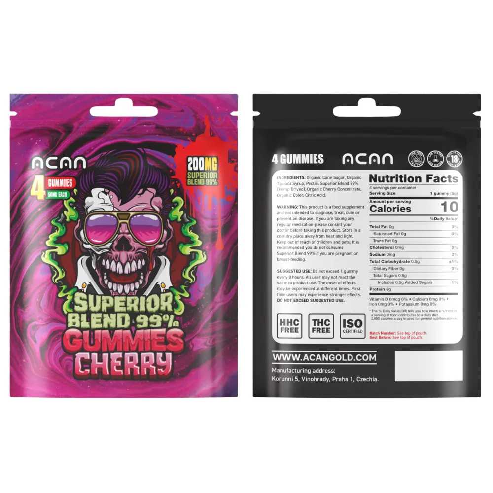With 200 mg of CBD in every gummy, ACAN Superior Blend 99% Gummies are an effective option for on-the-go CBD consumption, regardless of whether you are searching for ACAN Superior Blend Gummies or high-potency CBD gummies.